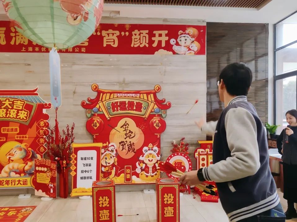 除了賞燈猜燈謎外,現(xiàn)場還安排了投壺納?;顒?dòng),吸引了不少員工一展身手,既能體驗(yàn)分寸之上博弈的刺激,也能為來年增添滿滿吉兆。